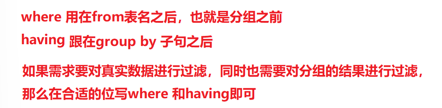 先执行WHERE过滤行 → 再执行GROUP BY分组 → 最后执行HAVING过滤分组结果