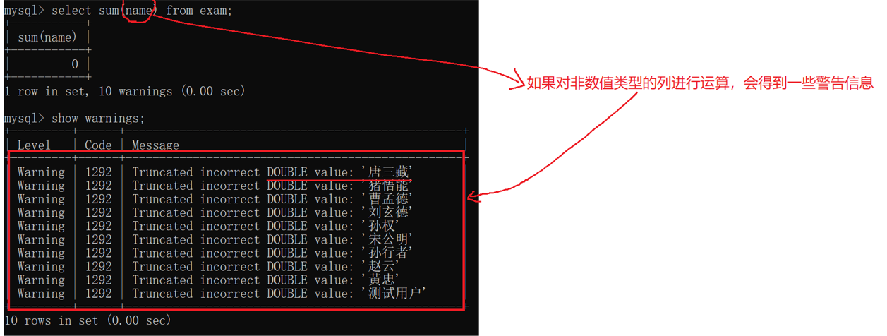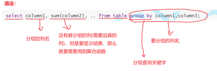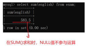 COUNT(*)外,所有聚合函数都会自动忽略列值为NULL的行;GROUP BY(分组统计)、HAVING(分组后过滤)使用,用于数据统计分析(如班级平均分、月度销售总额等)。函数: