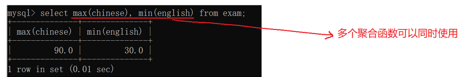 5.MIN 函数格式:MIN([DISTINCT] expr)作用:获取指定列的最小值。注意:①支持的类型及比较规则与 MAX 函数一致;②添加DISTINCT关键字不影响结果(最小值具有唯一性)。