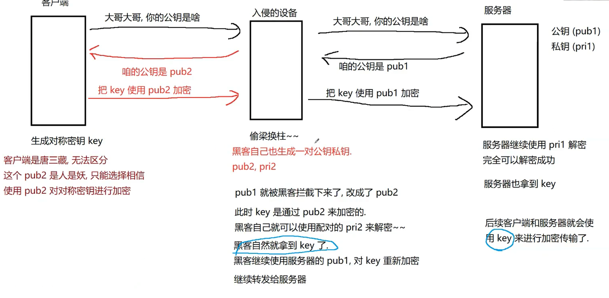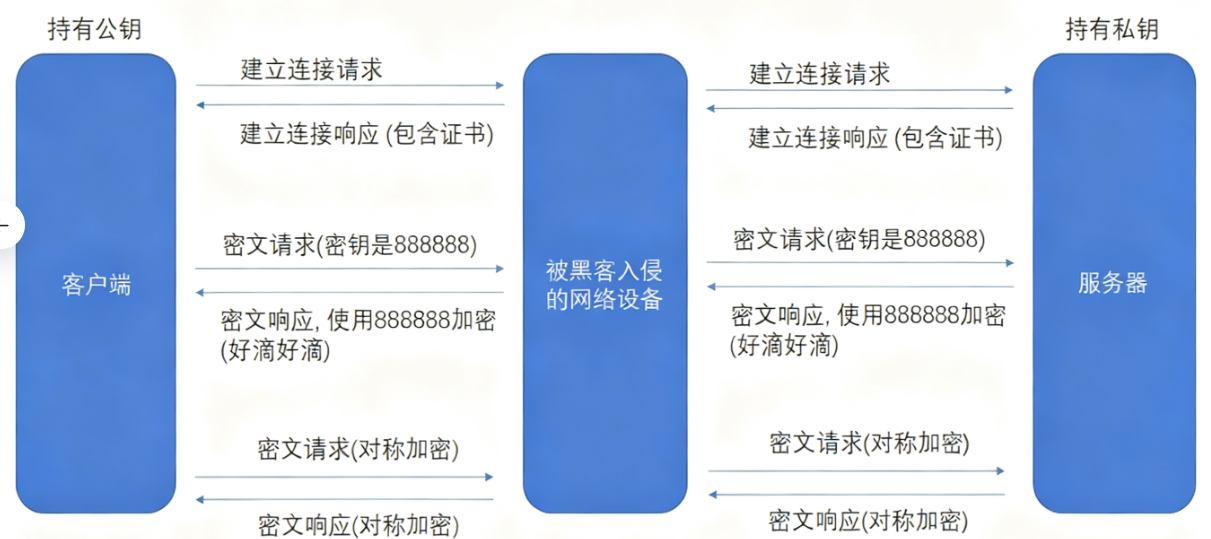 ⿊客可以hi有中间人攻击,获取到对称密钥