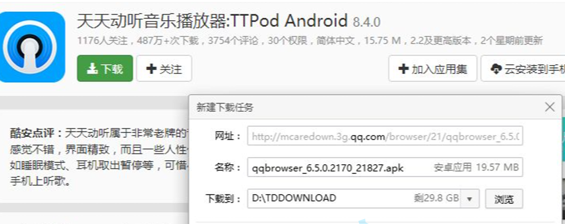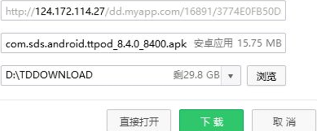 HTTP协议内容都是按照文本的⽅式明文传输的.这就导致在传输过程中出现⼀些被篡改的情况. 臭名昭著的"运营商劫持" 下载⼀个天天动听 未被劫持的效果,点击下载按钮,就会弹出天天动听的下载链接。