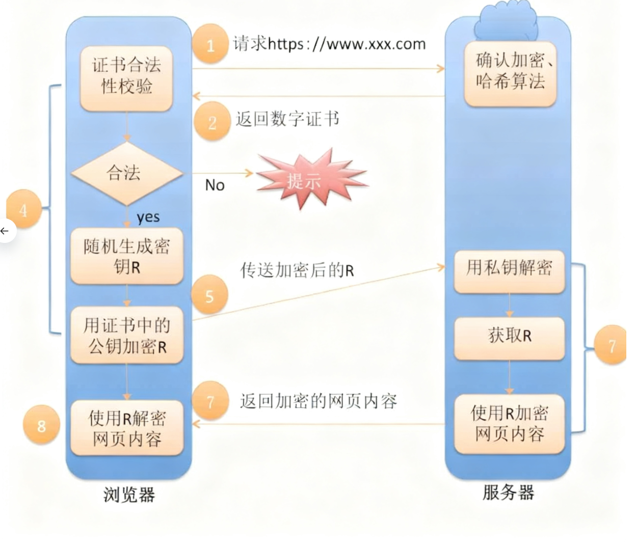 左侧都是客户端做的事情,右侧都是服务器做的事情.
