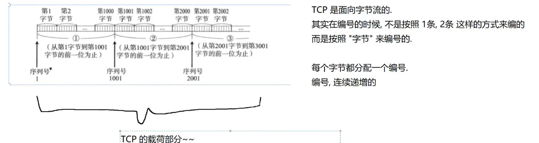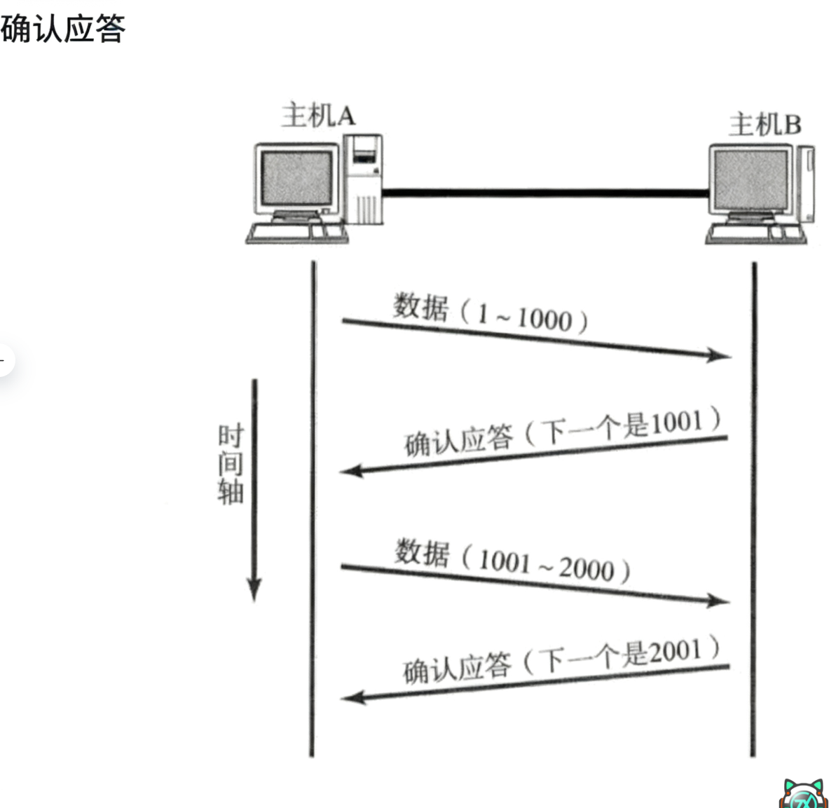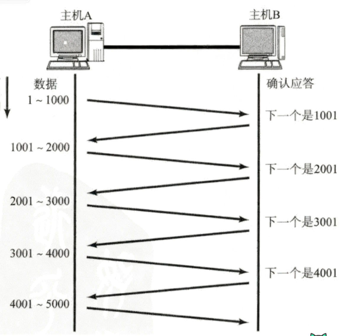 TCP 接收方(这里是主机 B,即服务器)的 ACK “下一个是 3001”,只有在它确实收到了 “1~3000 的连续数据段” 时,才会发送。