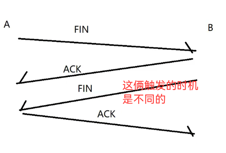 ACK(立即确认客户端的 FIN,避免客户端超时重发);FIN:等待自己的剩余数据全部发送完毕、处理完成后,再发送 FIN。此时 “ACK” 和 “FIN” 无法合并(因为中间需要传输数据),所以必须保持四次挥手流程。