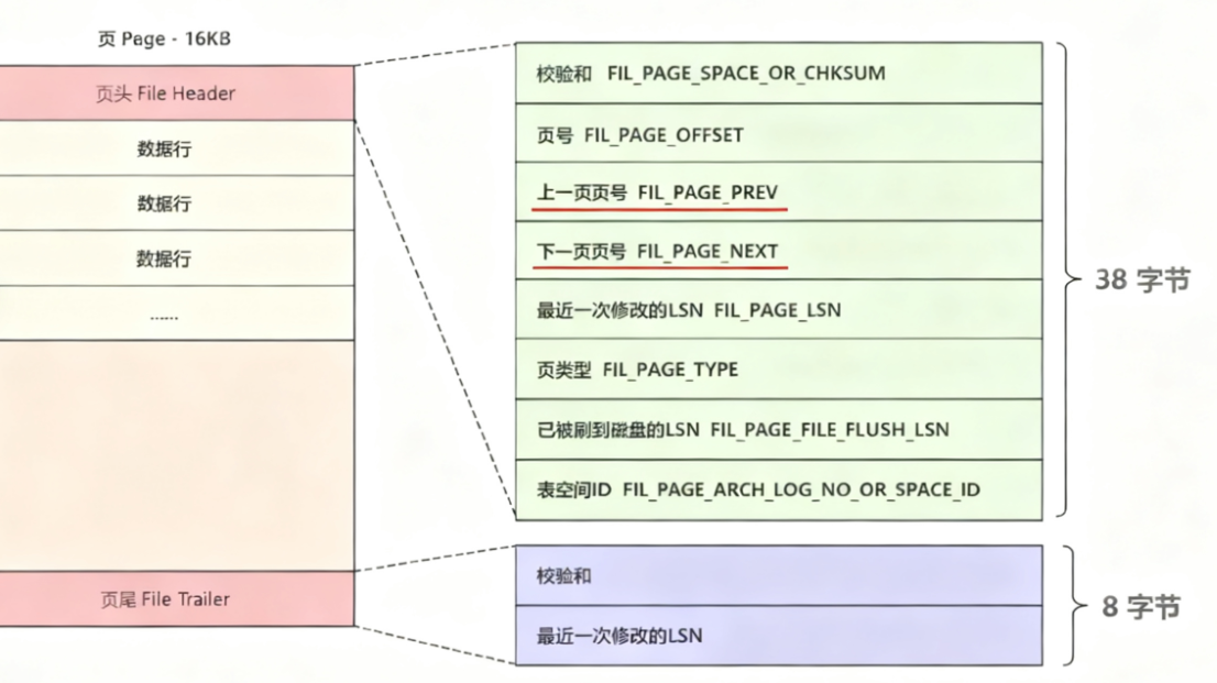 页文件头和页文件尾中包含的信息,如下图所示:
