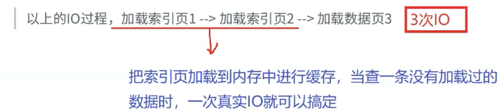 以上的IO过程,加载索引页1-->加载索引页2-->加载数据页3