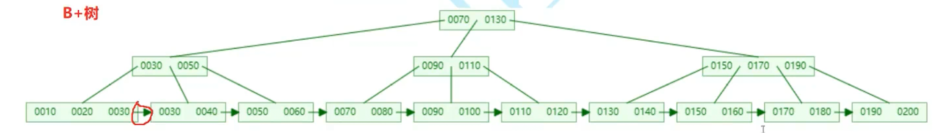 (2)非叶子节点仅具有索引作用,不存储数据,所有叶子节点保真实数据