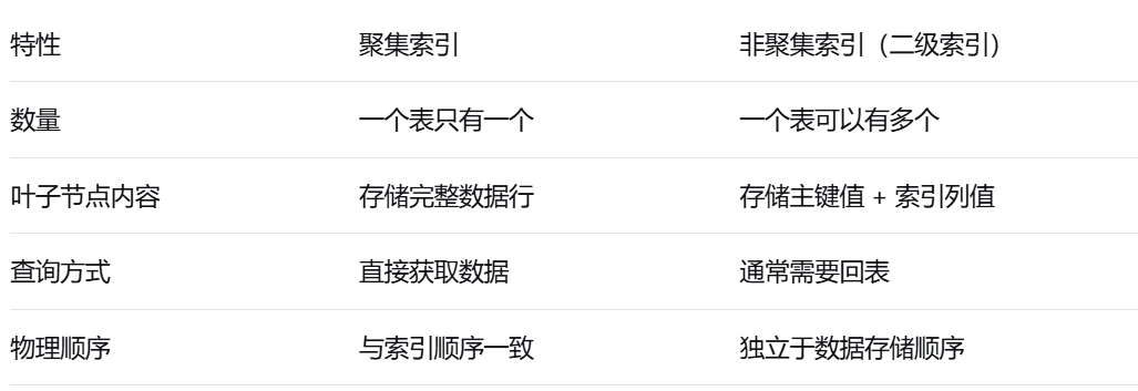 • InnoDB使用这个主键值来搜索聚集索引中的行,这个过程称为回表查询