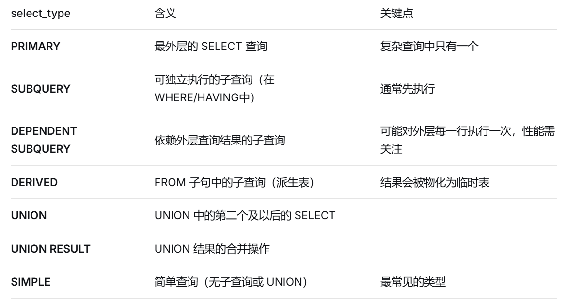 show keys from t_test_index6;MySQL 在执行一条 SQL 语句时,会先制定一个「执行计划」(比如:用什么方式访问表?是否使用索引?扫描多少行数据?)。EXPLAIN 语句的作用就是把这个计划「可视化」地展示出来,让你能看到: