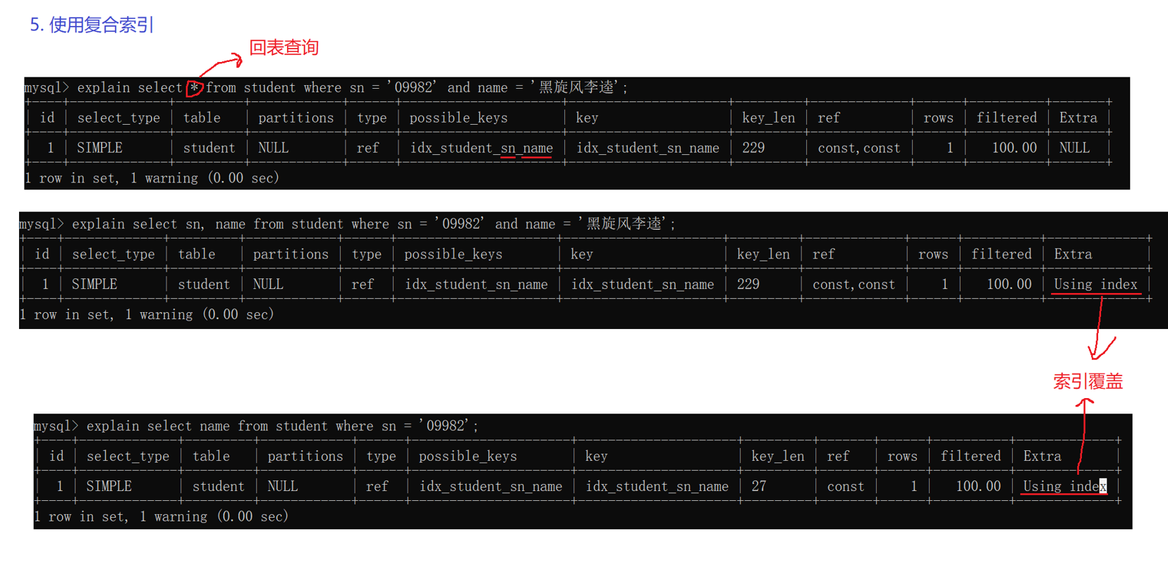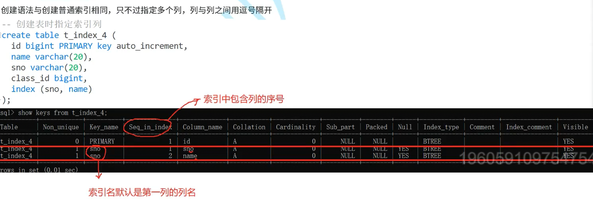创建语法与创建普通索引相同,只不过指定多个列,列与列之间用逗号隔开,默认索引名是第一列的列名