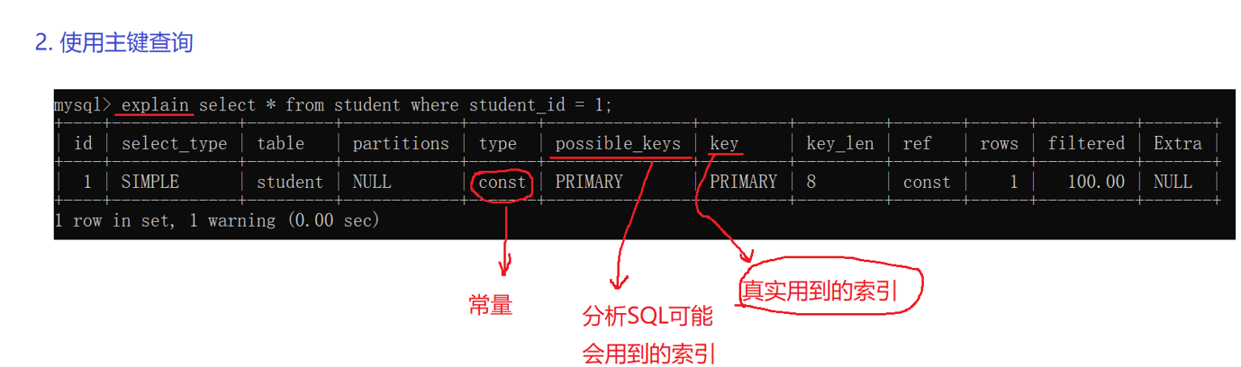 system 是 const 的特例(表只有一行)。性能最优。例2和例3的主查询部分就是 const。