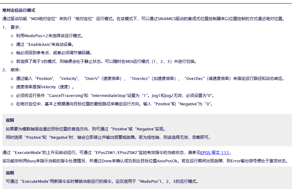 MDI称为设定值直接给定运行方式。即上位控制器直接设置目标位置、速度、加减速度后,轴自动移动到目标位置的定位方式。MDI 也是实际应用中最常使用的一种定位功能。