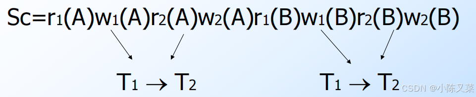 Assume P(S1) = P(S2) 存在Ti: Ti -> Tj in S1 and not in S2 =>S1 = …pi(A)... qj(A)… =>S2 = …qj(A)…pi(A)...(pi和qi顺序先后不同,或者不存在冲突操作) 存在矛盾S1, S2 not conflict equivalent