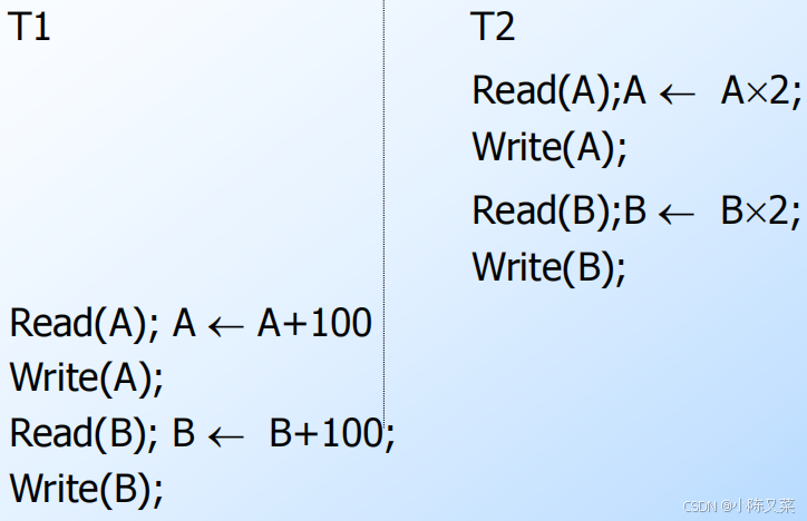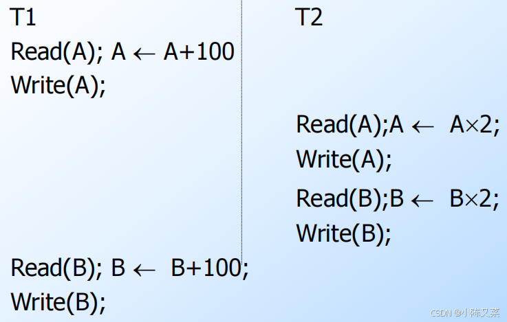S = ... l-Xi(A) … … ui(A) …() 在加X锁和解锁之间,不能有其他事务对该数据项进行加S、X锁(X锁和X锁、S锁都是不兼容的)