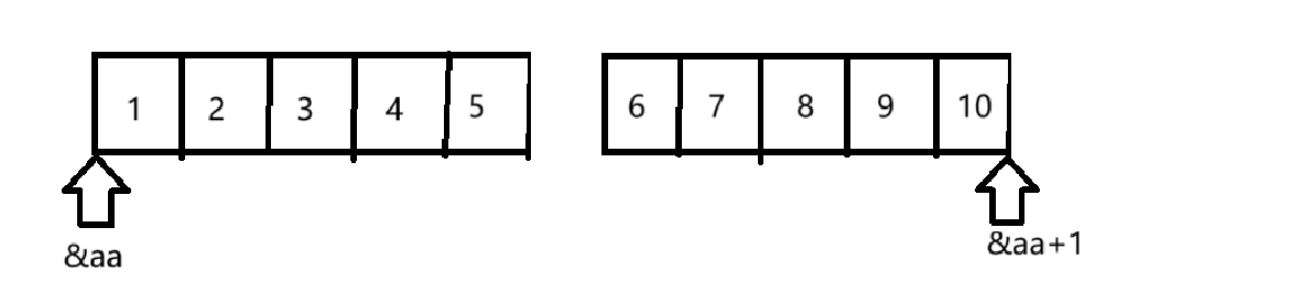 int *ptr1 = (int *)(&aa + 1),这里&aa拿到的是整个数组的地址,&aa+1跳过整个二维数组指向如下: