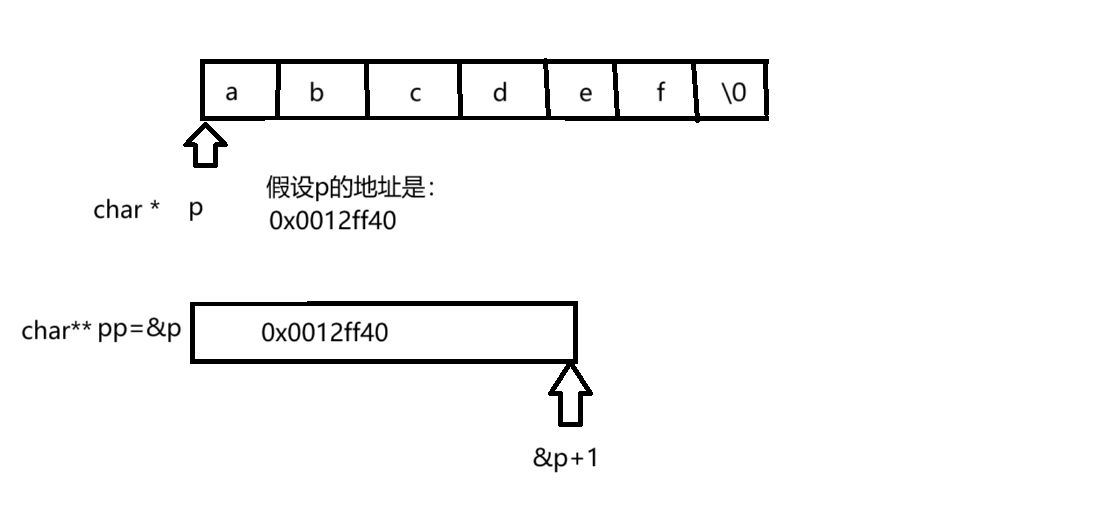 *(*(cpp-1)-1): cp[1]是一个char**的元素,指向的是c[2],存放的是c[2]的地址,cp[1]-1就相当于减少了一个char*字节的地址,指向了c[1],cp[1]通过解引用拿到了从c[1]这个元素。 如下图所示: