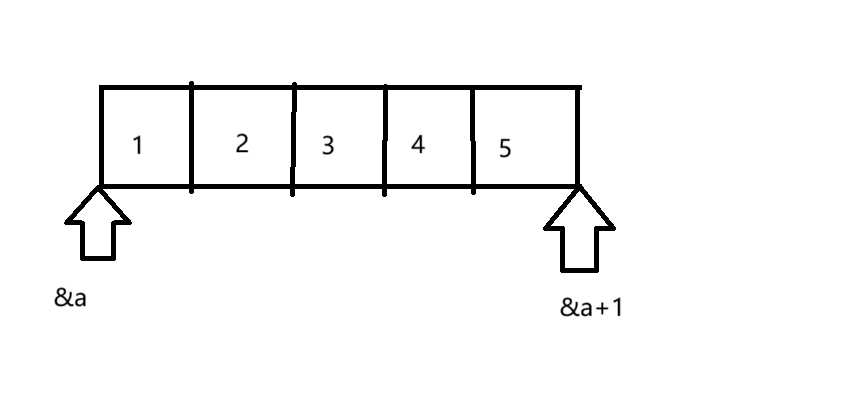}printf( "%d,%d", *(a + 1), *(ptr - 1)); 对于这段代码的核心是int *ptr = (int *)(&a + 1); 如何理解这段代码,先剖析&a+1,这里的&a,拿到的是a整个数组的地址,应该放在数组指针中,类型为int(*)[4],&a+1跳过了一个数组的地址,指向如下图所示: