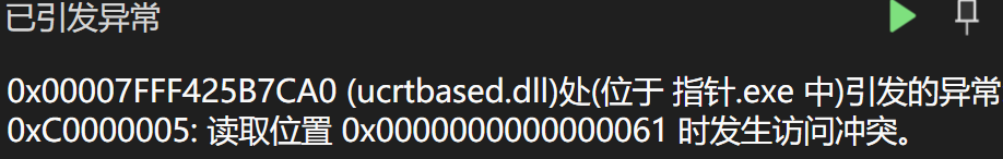3. printf("%d\n", strlen(*arr)); 这里的arr是数组首元素的地址,*arr拿到的是第一个元素,即'a',而strlen的原函数是 size_t strlen ( const char * str ),所以这里的'a'会被转化为地址,我们知'a'的ascii值是97,在十六进制中是0x61,而这里的地址是我们用户不能访问的,所以这段代码会报错。