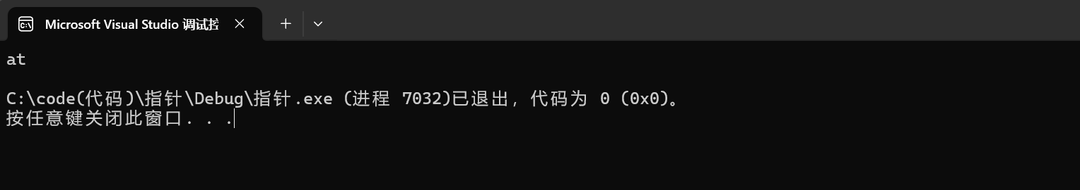 char**pa=a,这是定义了一个二级指针,我们知道数组名是数组首元素的地址,这里拿到的就是字符指针数组中第一个元素的地址,pa++跨越一个char *元素,也就指向了第二个元素。 *pa就拿到了第二个元素,第二个元素是什么呢,是一个指向“at”字符串的指针,也就是说这里拿到的就是"at"的首元素的地址。 所以以%s形式进行打印,就打印了“at”这个字符串。