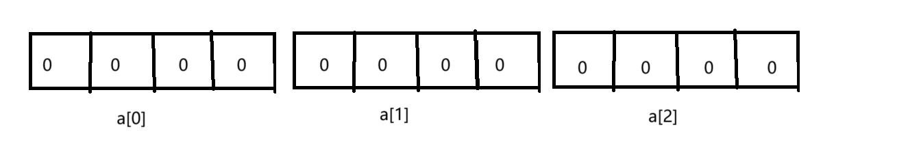 其实不然,二维数组在内存中其实是多个连续的一维数组合成的,那么由此我们就可以有一个想法,那岂不是a[3][4]中,a[0],a[1],a[2]分别是第一行的数组名,a[1]为第二行的数组名,a[2]为第三行的数组名吗?确实可以这样理解,将二维数组理解为多个一维数组拼接而成。