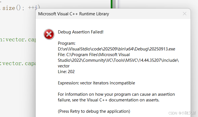 问题引入 在上一篇文章中我们详细讲解了vector的常见接口及其模拟实现,大家可以自行参阅:【C++】STL--Vector使用极其模拟实现,但是我们在接口insert和earse中有时候会发生迭代器失效的情况,我们今天来深入学习一下。