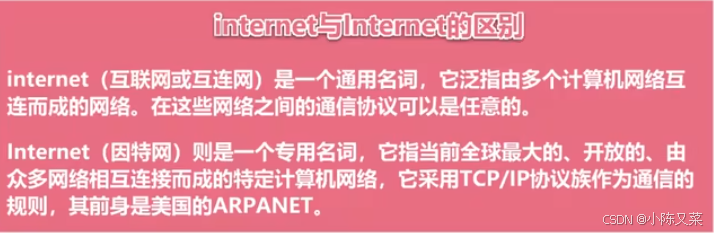 - 多个网络还可以有路由器连接起来,形成一个覆盖范围更广的网络(互联网),有歌更形象的说法,因特网是“网络的网络”