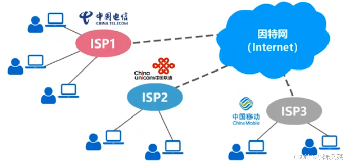 - ISP作为因特网服务提供者,它从因特网管理机构申请了成块的IP地址,个人用户或者机构通过缴费形式,来从ISP获得IP地址,从而获取互联网通信资格