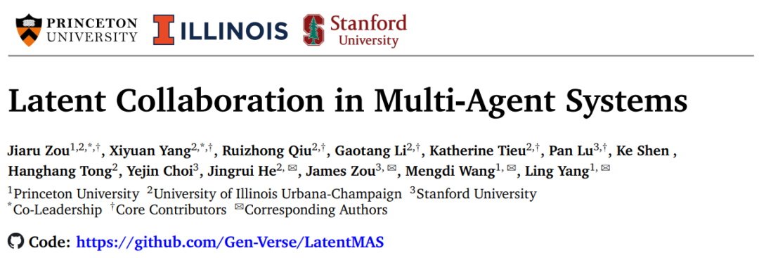 为回答这一问题,他们提出一种多智能体推理框架 LatentMAS,其将智能体之间的协作从传统的 token 空间转移到了模型的潜在空间。核心创新是:让所有智能体不再通过文本交流,而是在潜在空间中直接协作。