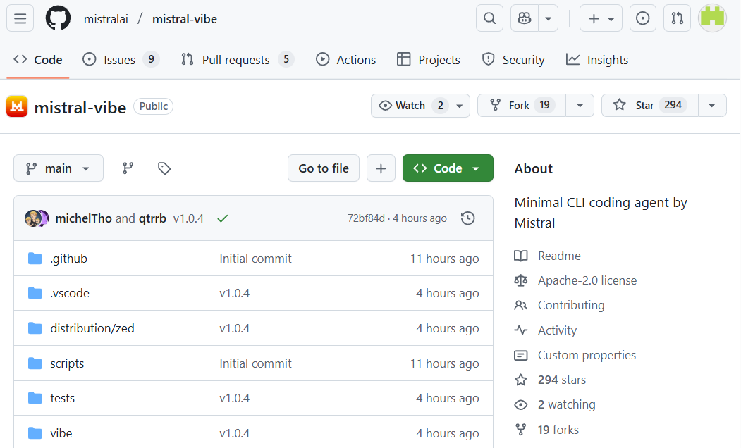 开源地址:https://github.com/mistralai/mistral-vibe