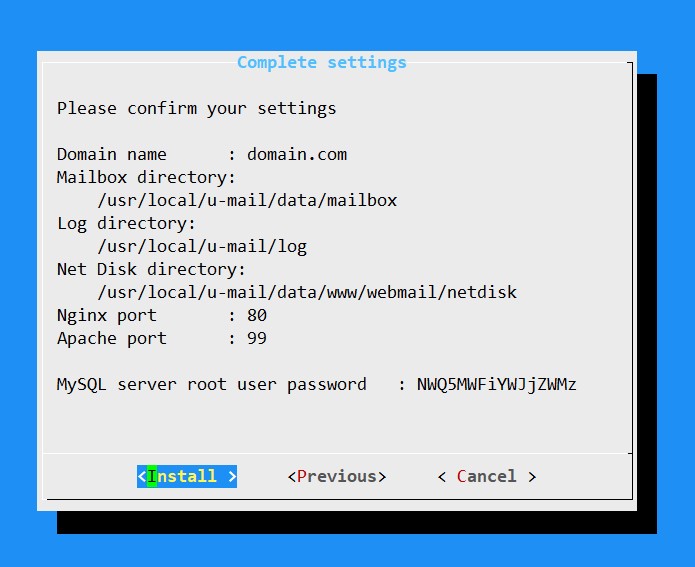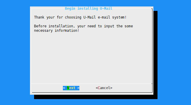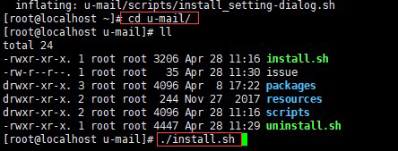 3、切换目录至u-mail 目录中,并且运行 【./install.sh】安装脚本