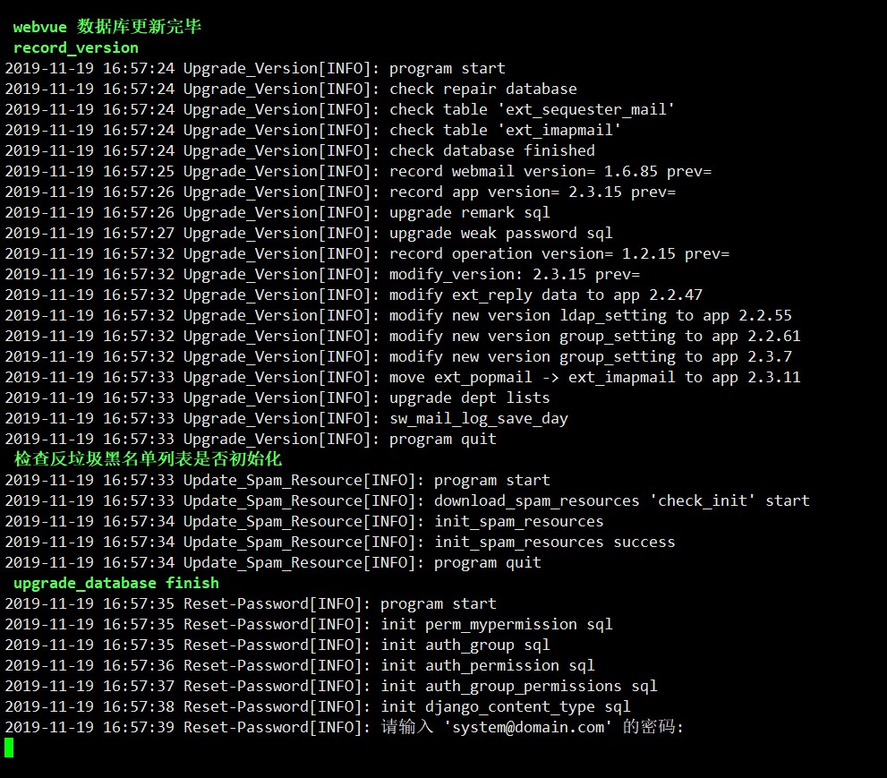 9、中间安装过程忽略,直到提示【请输入 'system@domain.com' 的密码:】,在这里自行设置下管理员的密码,输完回车确定。