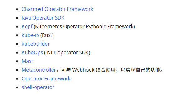 官方列举有这些工具和库,可以用于编写自己的云原生operator,这里挑几个常用的来看看