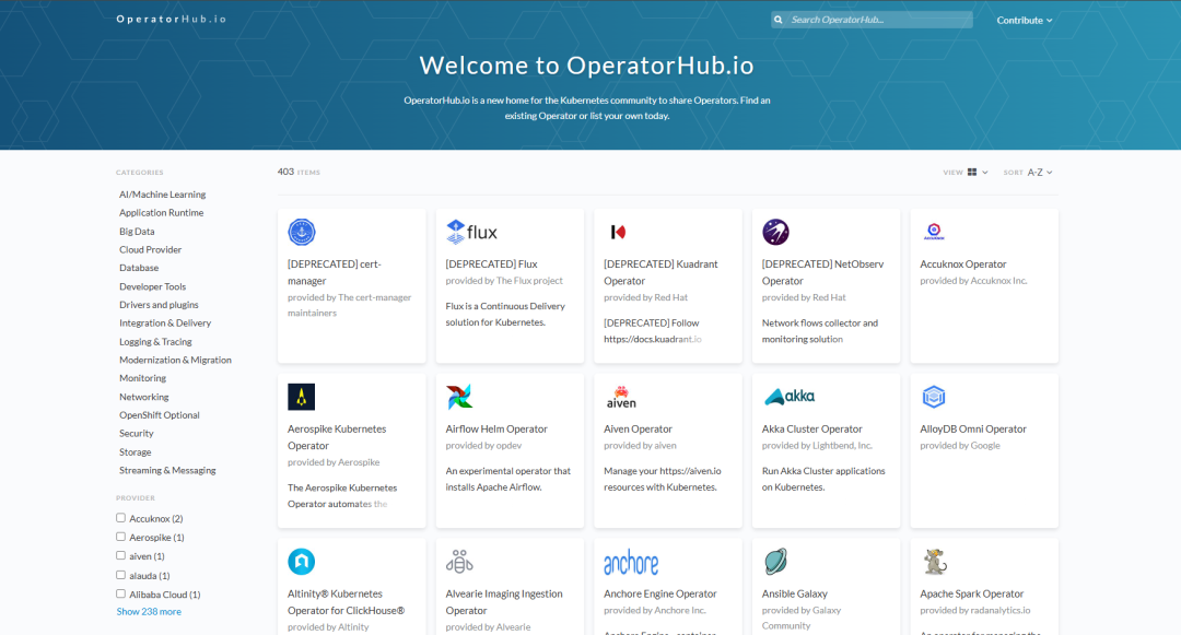 了解了以上内容,如果你不想开发,也可以在 OperatorHub.io[3] 上找到现成的、适合你的 Operator