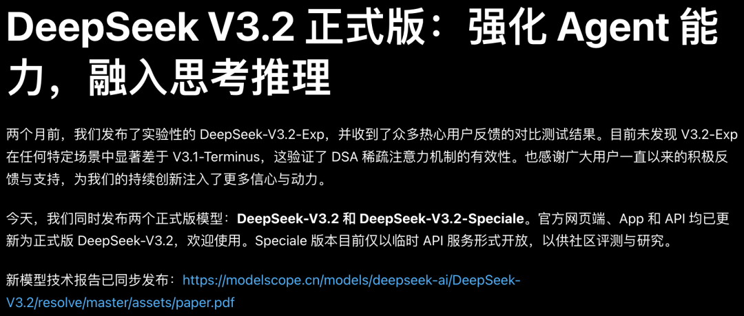 DeepSeek V3.2 正式版:强化 Agent 能力,融入思考推理