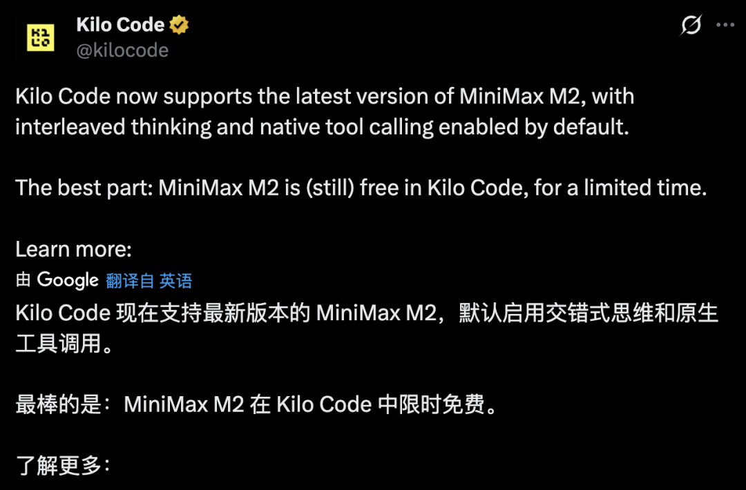 • Kilo Code:针对这个新兴的云端IDE,MiniMax提交了代码,优化了环境细节与工具结果的合并逻辑,解决了多轮对话中状态丢失的问题。