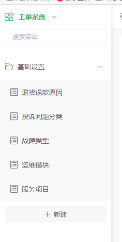 5、根据自己公司需要创建菜单,不知道怎么创建的可以参考一些成熟的工单系统来创建,工单系统不外乎都是表单和仪表盘界面。