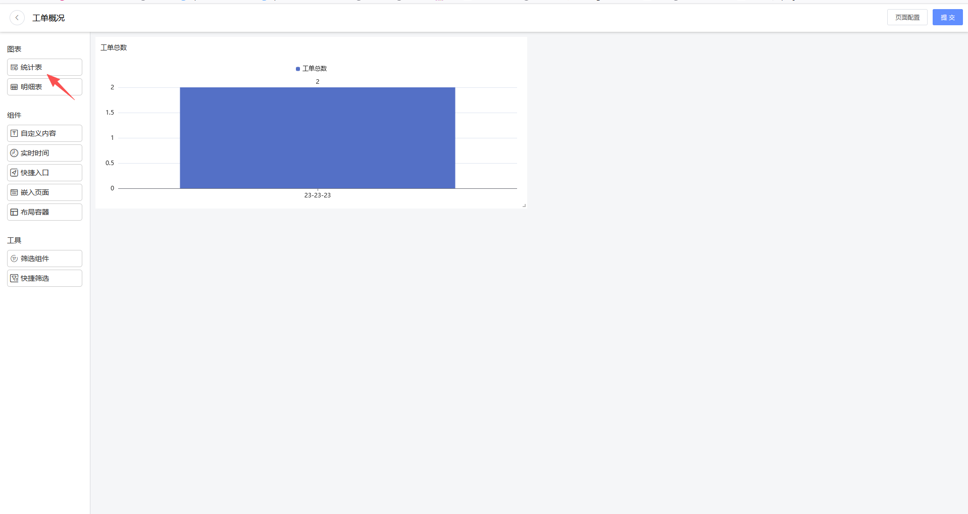 这里只添加了一个演示,大家可以根据自己业务需求创建,图表也是通过可视化制作,如下图:
