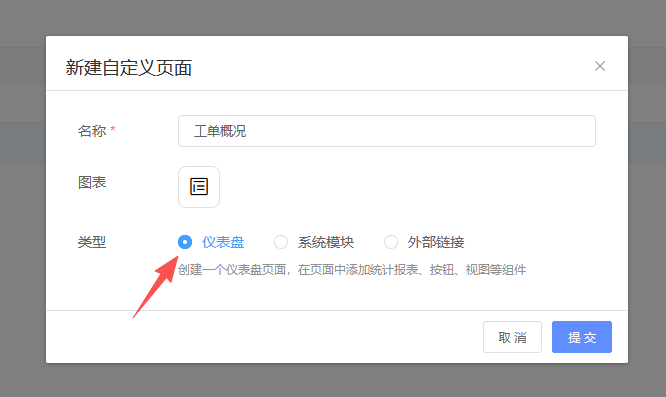 表单制作就不做详细描述,直接可视化创建即可,下面演示如何创建仪表盘。