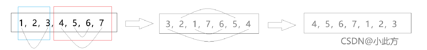 在字符串旋转、链表旋转等问题中都有类似技巧。 它本质上是利用了反转操作的双重应用可以重置部分顺序的性质。