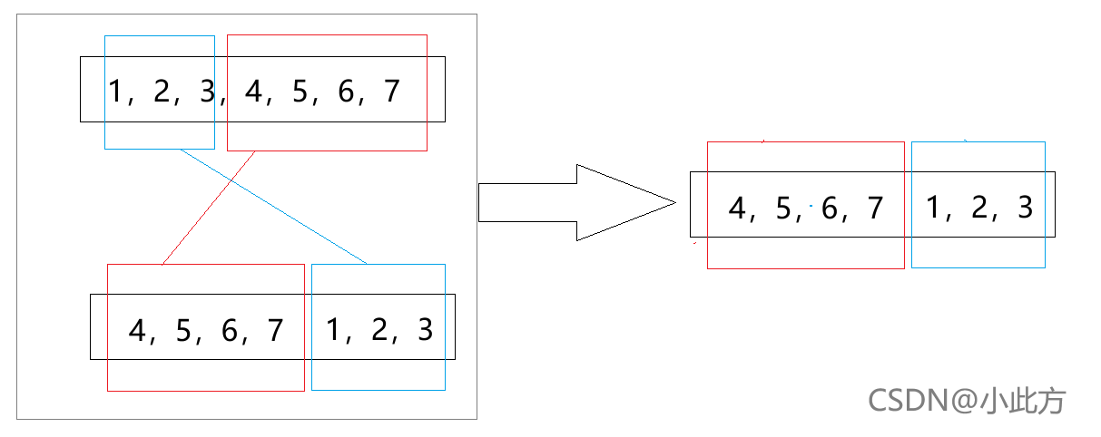 ➤ 通过观察,我们不难发现,轮转后的数组有两部分组成,以此为例: