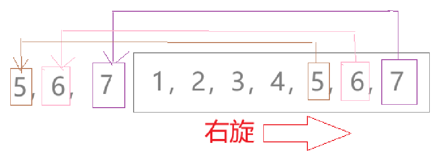 右旋转定义:元素向右移动,右边的元素从尾部回到头部