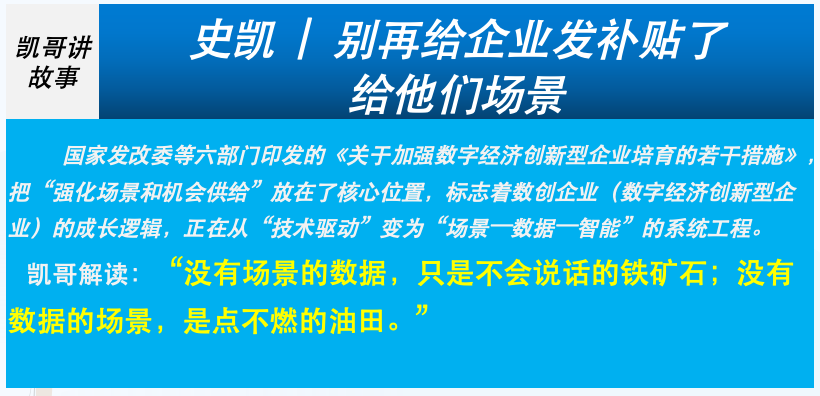 “十五五”时期,数字经济政策正在经历一次静悄悄但非常关键的换挡: 从“给企业发补贴”,转向“给企业供场景”。 国家发改委等六部门印发的《关于加强数字经济创新型企业培育的若干措施》,把“强化场景和机会供给”放在了核心位置,标志着数创企业(数字经济创新型企业)的成长逻辑,正在从“技术驱动”变为“场景—数据—智能”的系统工程。