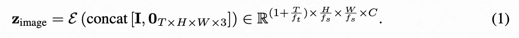 通过使用预训练VAE编码器编码第一帧以及零填充的后续帧获得: