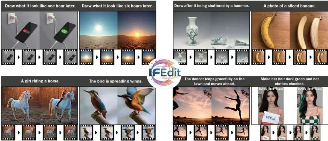 眼见为实,对比一下: 当指令是“把椅子锯成两半”时,传统模型只是在椅子上画几条线,而 IF-Edit 真的把椅子结构“锯”断了; 当指令是“鸟儿低头”时,IF-Edit 完美保持了鸟的身体结构,不仅是扭曲像素,而是模拟了动作。