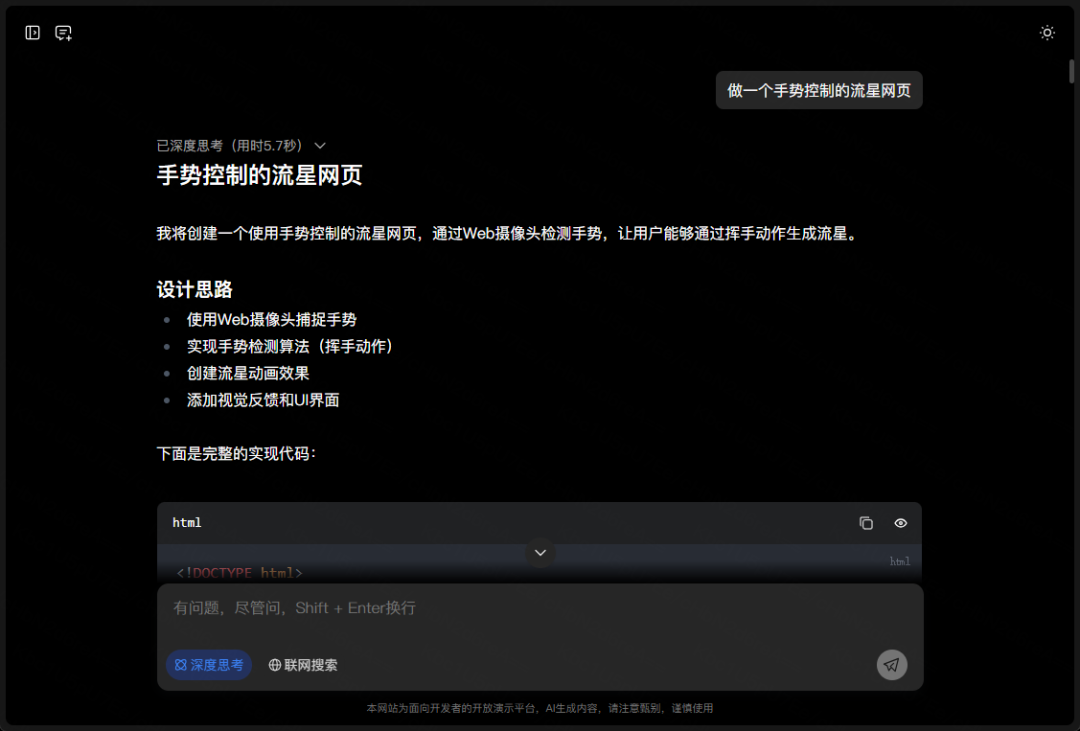 比如前几天,Gemini流星雨,我就想,让Mimo给我做一个可以手势控制的流星网页。
