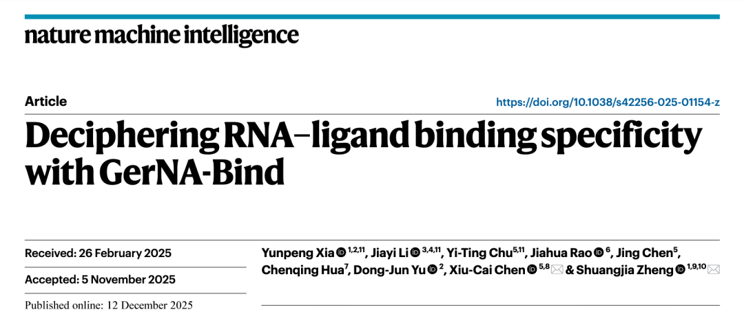 Xia, Y., Li, J., Chu, YT. et al. Deciphering RNA–ligand binding specificity with GerNA-Bind. Nat Mach Intell (2025).