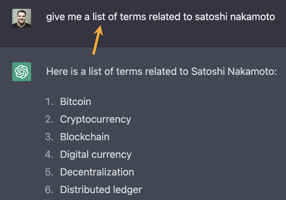 让它列一些跟 bitcoin 相关的术语,会蹦出很多你想不到的词。