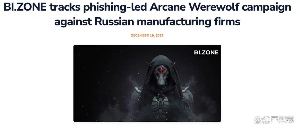 Arcane Werewolf(亦称Mythic Likho)自2023年起活跃,主要针对俄语区国家的关键基础设施,尤以能源与制造业为重点。2025年10月至12月间,BI.ZONE观测到该组织新一轮攻击浪潮,目标明确指向俄罗斯境内拥有国家级产能资质的制造企业,包括重型机械、化工原料及精密仪器制造商。