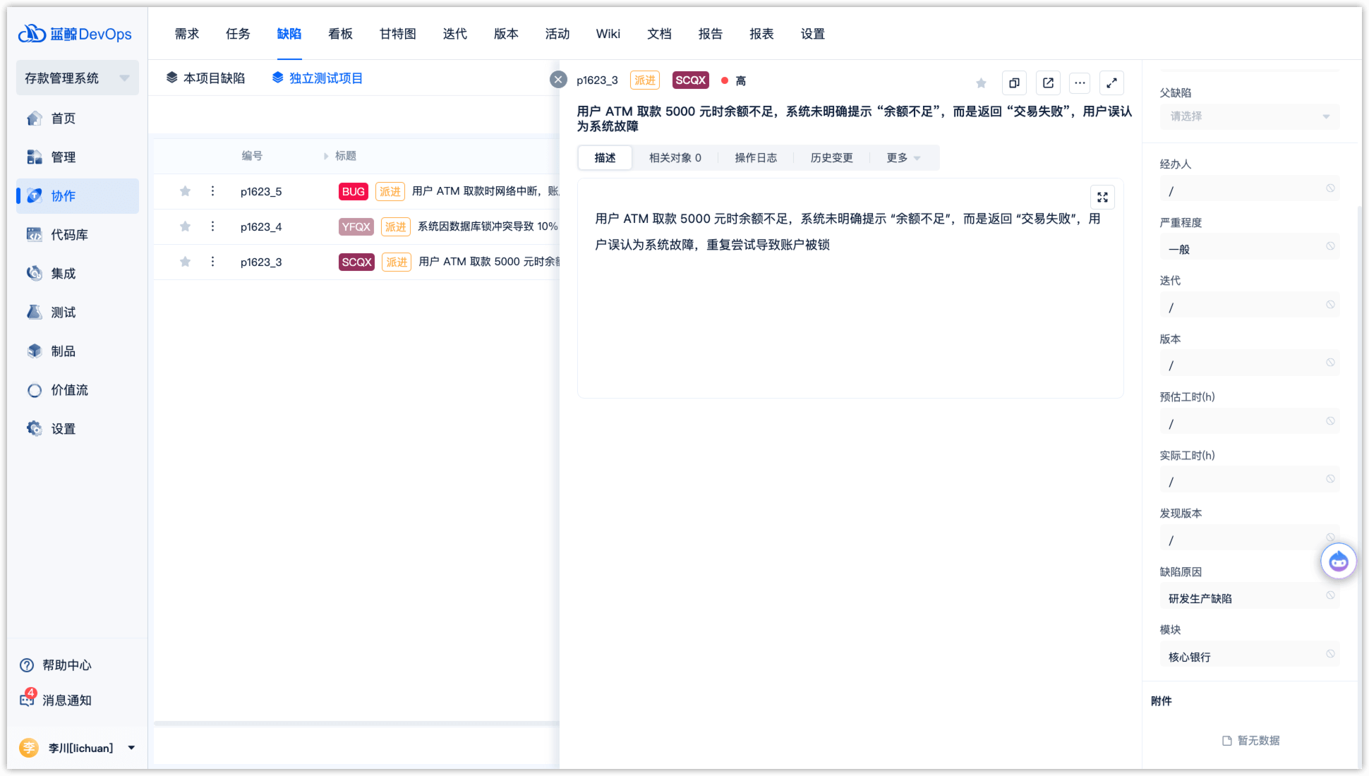 缺陷分派至研发项目时,系统自动同步标题、详细测试步骤、截图、优先级等全量信息,并在研发项目内生成“关联缺陷”并标注“跨项目上级”,即测试端原始缺陷,研发无需找测试二次确认场景,信息传递无偏差。
