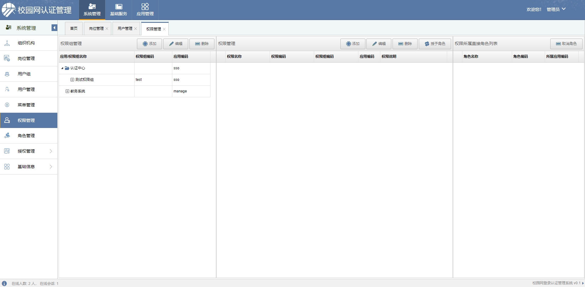 角色管理:对系统中包含的角色和角色所实现的权限进行管理;